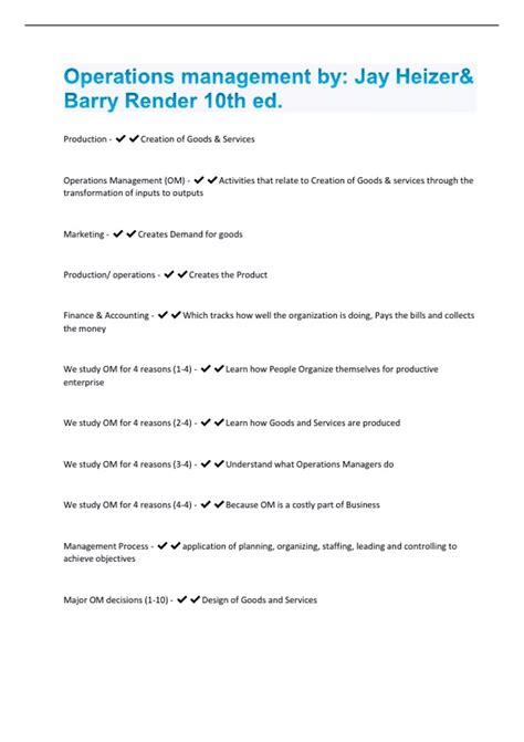 Read Online Operations Management Heizer Render Multiple Choice Answers Kindle Editon ManyBooks